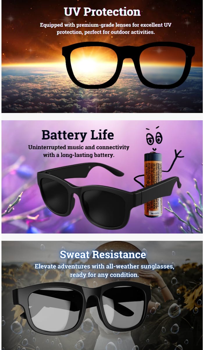 Wireless Bluetooth Smart Sunglasses combine cutting-edge technology with sleek fashion. These sunglasses feature integrated Bluetooth functionality, allowing you to make hands-free calls, listen to music, and access voice assistants without needing to reach for your phone. With UV protection and stylish frames, they provide both eye protection and high-tech convenience. Perfect for outdoor enthusiasts, commuters, or anyone on the go, these sunglasses offer a seamless and modern solution for staying connected while enjoying the outdoors.