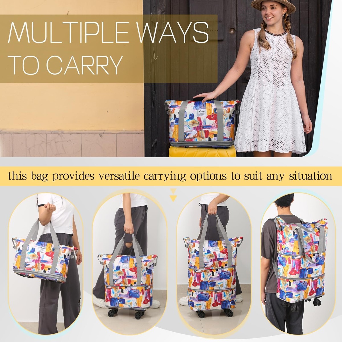 Printed Rolling Duffle Bag with Wheels Expandable
